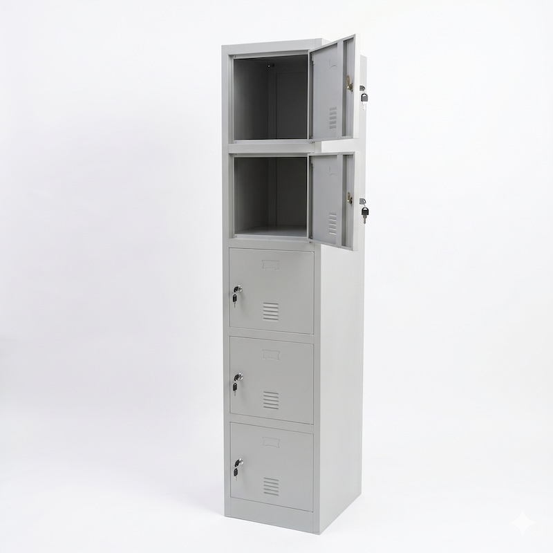 Upgrade your facility’s storage with our premium Five Compartment Locker in Light Grey. Engineered for durability and high-traffic use, this locker system provides a streamlined solution for personal storage without sacrificing floor space.