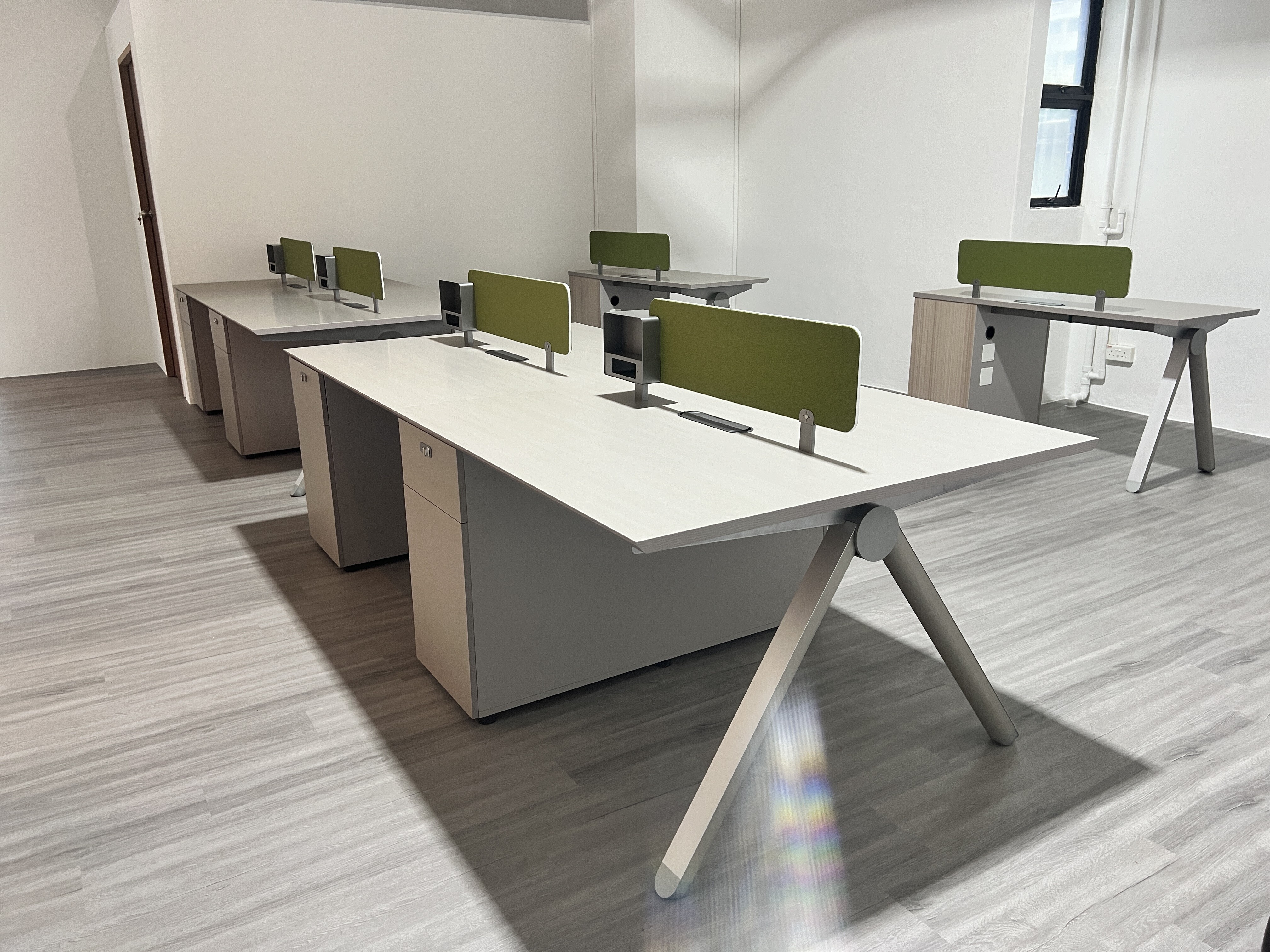 Offer a flexible and durable solution, starting from sets of 2 and expanding as needed. Made from E1 low formaldehyde high-density board with a UV excimer topcoat, these workstations combine environmental safety with exceptional durability. Each set includes a drawer, a single-door compartment, and a low divider with power points and USB ports, providing organised storage and convenient connectivity. Perfect for customisable, high-performance work environments.