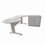 This stylish and functional L-shaped office desk is designed to enhance any workspace. Measuring 1800mm x 1800mm, it provides ample space for work, organization, and storage. Crafted from solid melamine-laminated material, it offers a durable and smooth surface for everyday use. The desk features sturdy white epoxy metal legs with a sleek finish and a modesty panel for added stability and privacy. An integrated lockable cabinet ensures secure storage for your essentials.