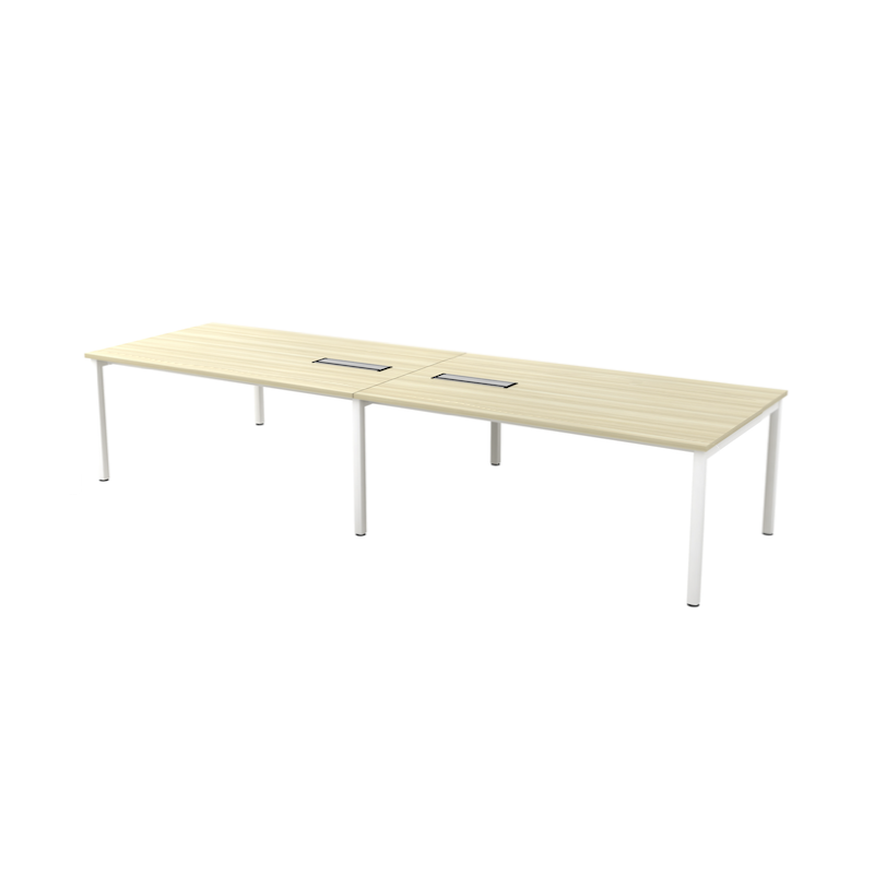 Modern rectangular conference table from the SL Series, available in multiple sizes (1800–4800mm) for 6–14 Pax. Optional cable management and sleek office design.