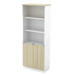 Modern white and Boras Ash cabinet with clear glass top, 05-tiers filing capacity, full swing doors, and durable features—perfect for elegant and organised storage.
