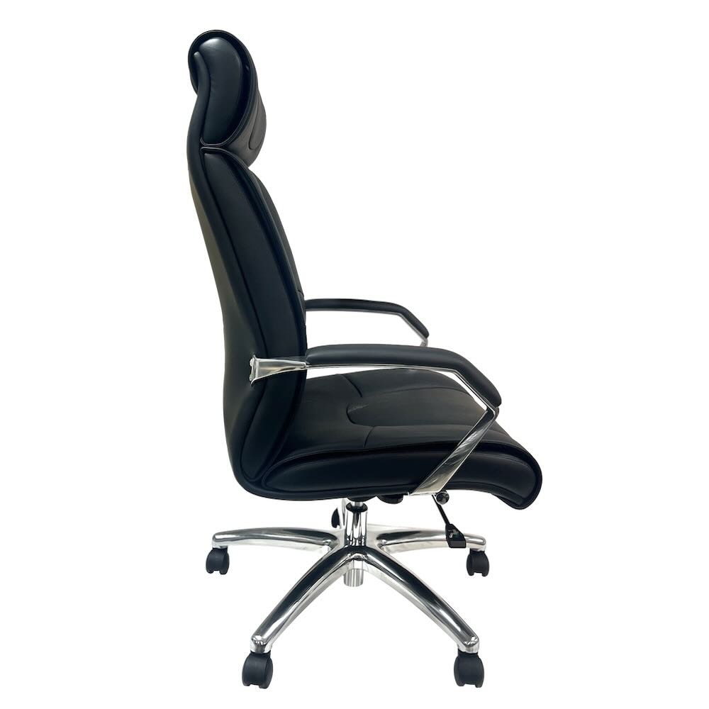 Designed for comfort, Taurus Genuine Leather Chair in sophisticated black combines modern design and ergonomic features, making it the perfect addition to any office.